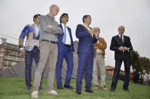 All’inaugurazione del monumento erano presenti Marco Gabusi, sindaco di Canelli, Ercole Zuccaro, membro del Consiglio di Amministrazione di Banca di Asti, Angelo Piombo Capo Area Acqui-Nizza-Canelli, Enrico Graziano Direttore della Filiale di Canelli, Marica Chiola, architetto e membro della commissione che ha selezionato le opere e le autorità locali.